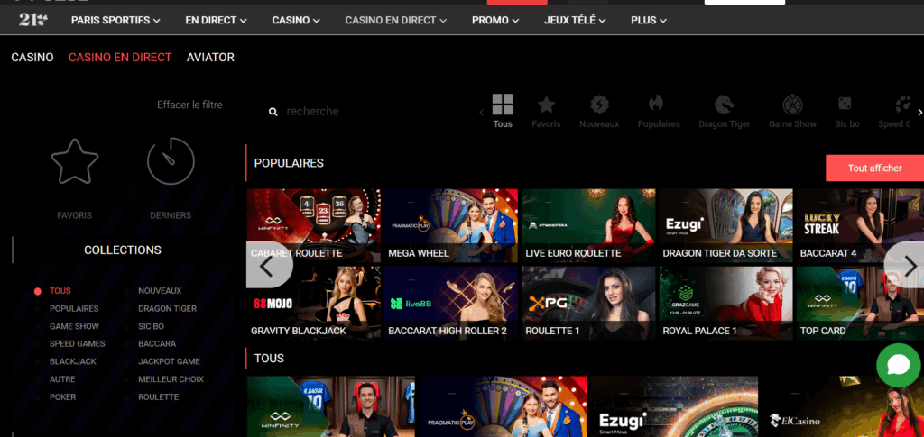 - Jeux avec croupiers en direct : la possibilité de jouer à des jeux de casino avec de vrais croupiers en temps réel.